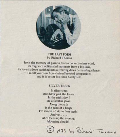 Richard Thomas is loaded with talent. He's a native New Yorker whose parents, Richard Thomas and Barbara Fallis, operate The New York School of Ballet. Richard himself is no mean dancer, but what he uses it for chiefly is as an important discipline of his acting-movement. If you watch him closely on your next -Thursday night with the Waltons, you'll catch his splendid physical conditioning and control. He plays it down, but it's there.