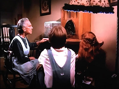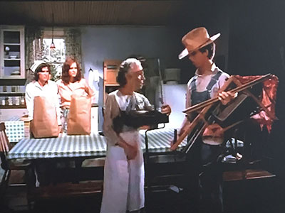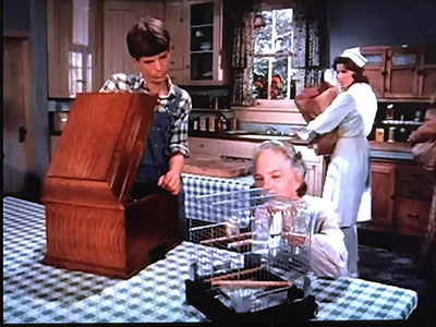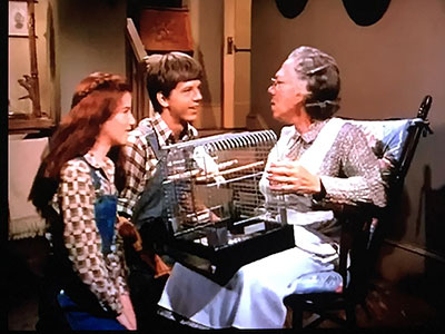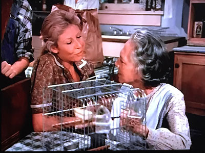 The next day at the store, the Godsey’s show the paintings in their new art gallery to Olivia and Mary Ellen. Olivia finds them very disturbing but admits that he is very talented. Ike would rather have the money instead of culture and wonders why he doesn’t get a real job instead. The women arrive home with the groceries and Grandma is still stubbornly trying to get the canary to sing.