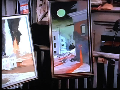 Derek arrives at the store looking for more supplies but Corabeth says that he cheque was returned with insufficient funds and that he already has built up a sizable amount on his store credit. He offers her 3 paintings of scenes of war in Europe as collateral. When she sees the powerful images she is in awe of his talent and agrees to help out the community’s leading artist to go hungry. Erin walks in and asks if she can look at his paintings. He agrees and he says that the important thing is realizing the emotion it creates in you. Corabeth returns with Derek’s supplies, Erin gives Corabeth some letters she want to mail and Corabeth reports that she is going to open an Art Gallery featuring Derek’s work. Erin leaves and Derek follows her outside. He asks if she will pose for a portrait at his house. She tries to deny his request and then Jason arrives to drive her to work.
