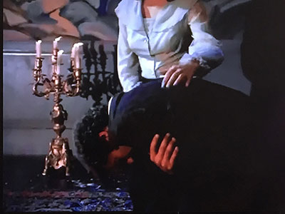 Erin decides to go to the Pembroke house to pose for Derek. He answers the door holding a candelabra for light. He has lit the house with candles. He shows Erin the spot that he has reserved for her portrait. Derek embraces Erin and mistakes her for Gabrielle the woman that he lost in Paris. Erin races out of his house leaving he still calling out for Gabrielle.